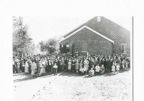 June 19, 1949, was the last service held in the frame building. On June 20, 1949, the men of the church began construction on the new church. During the building, regular services were held in the high school. Dedication services for the new building were held October 16, 1949.